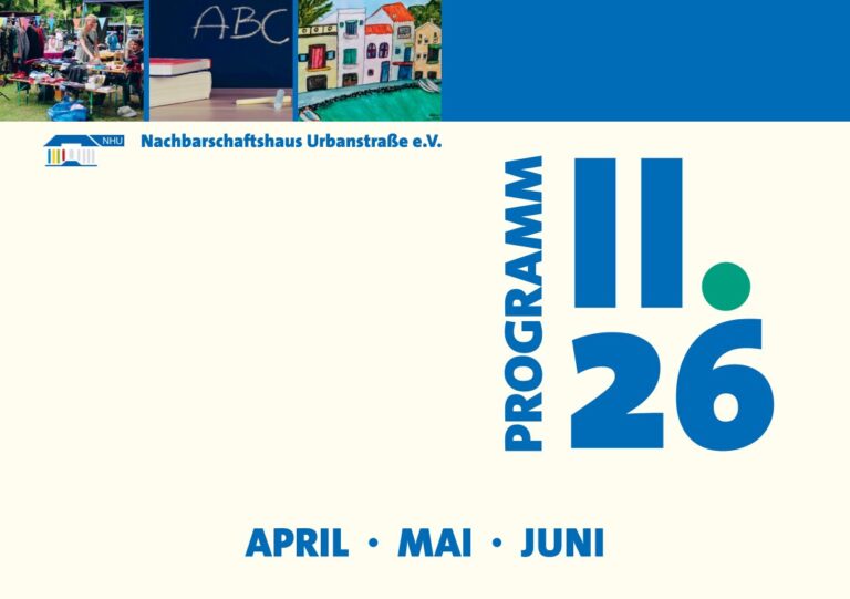 Einmal im Quartal kommt das neue Programmheft des Trägers „Nachbarschaftshaus Urbanstraße e.V.“ heraus. Darin könnt ihr alle Informationen zu regelmäßig stattfindenden Gruppen und Veranstaltungen an unseren Standorten nachlesen. Das aktuelle Programmheft ist hier abrufbar (bitte auf das Bild klicken):